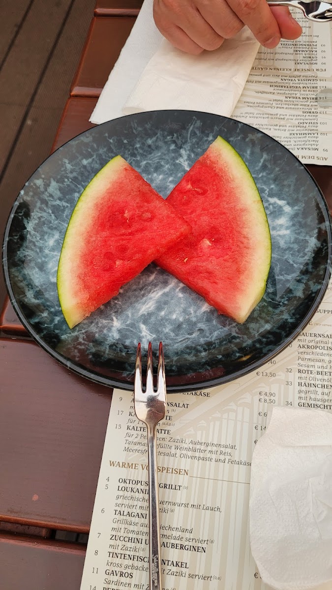 The menu at Akropolis Munich offers a delightful blend of Greek and Mediterranean dishes, perfect for those looking to explore bold flavors and traditional recipes. One of the standout appetizers is the Watermelon, a refreshing choice to start the meal. For those craving a classic, the Garlic Bread is a crowd-pleaser, offering a warm and flavorful bite with every piece.